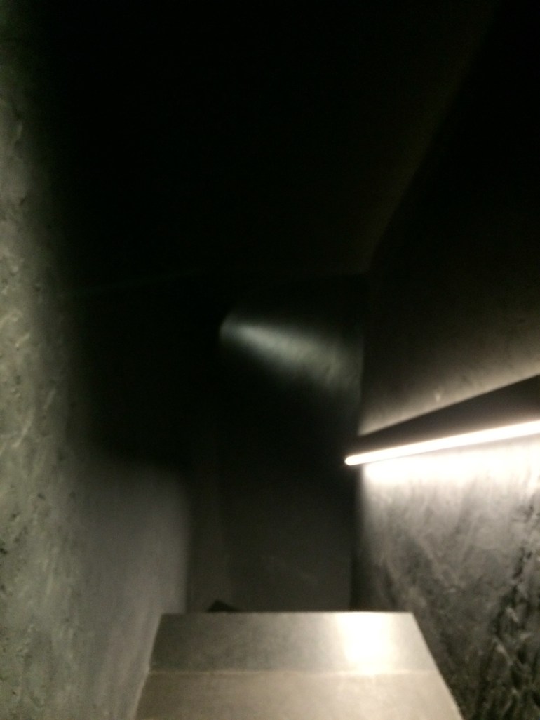 E poi l’ambiente, dal design essenziale ma avvolgente, con un effetto caverna dark e incursioni luminose che donano familiarità, è stato sfruttato magistralmente, grazie ad un degradè di grigi che tramuta in un total black nella saletta retrostante dominata da un grosso ed unico tavolo, centrale ma soprattutto social.