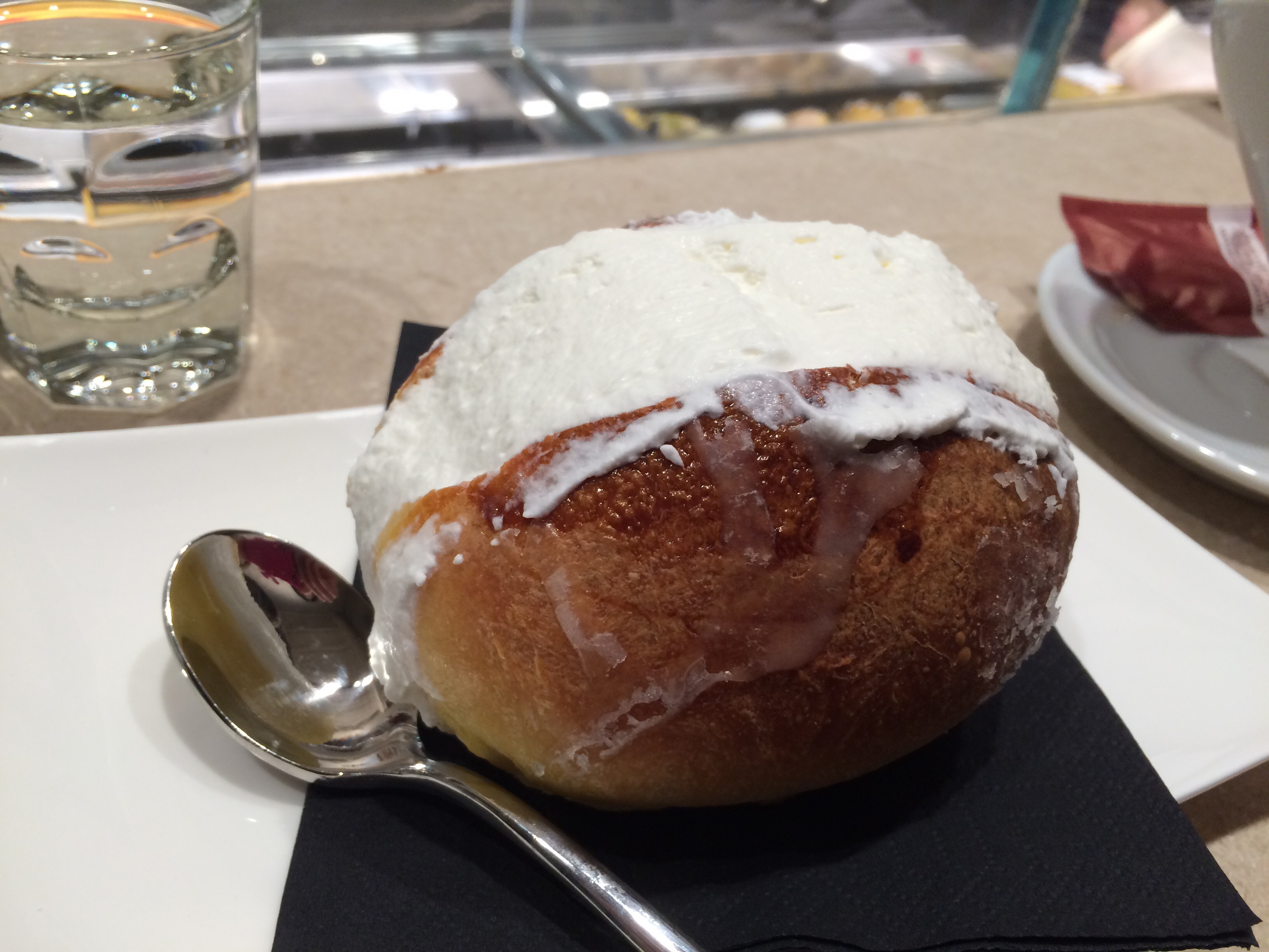 Il profumo inebriante di una macinatura e tostatura lodevole vi sospinge all’interno, ma una volta dentro i vostri occhi non potranno non sussultare dinanzi all’ampia scelta di “pastarelle”, fresche e sapientemente preparate, o alla vista del riempimento, anzi, mi correggo, strariempimento, al momento, del fatidico maritozzo con la panna, che, ça va sans dire, è di una sofficezza che non conosce rivali.