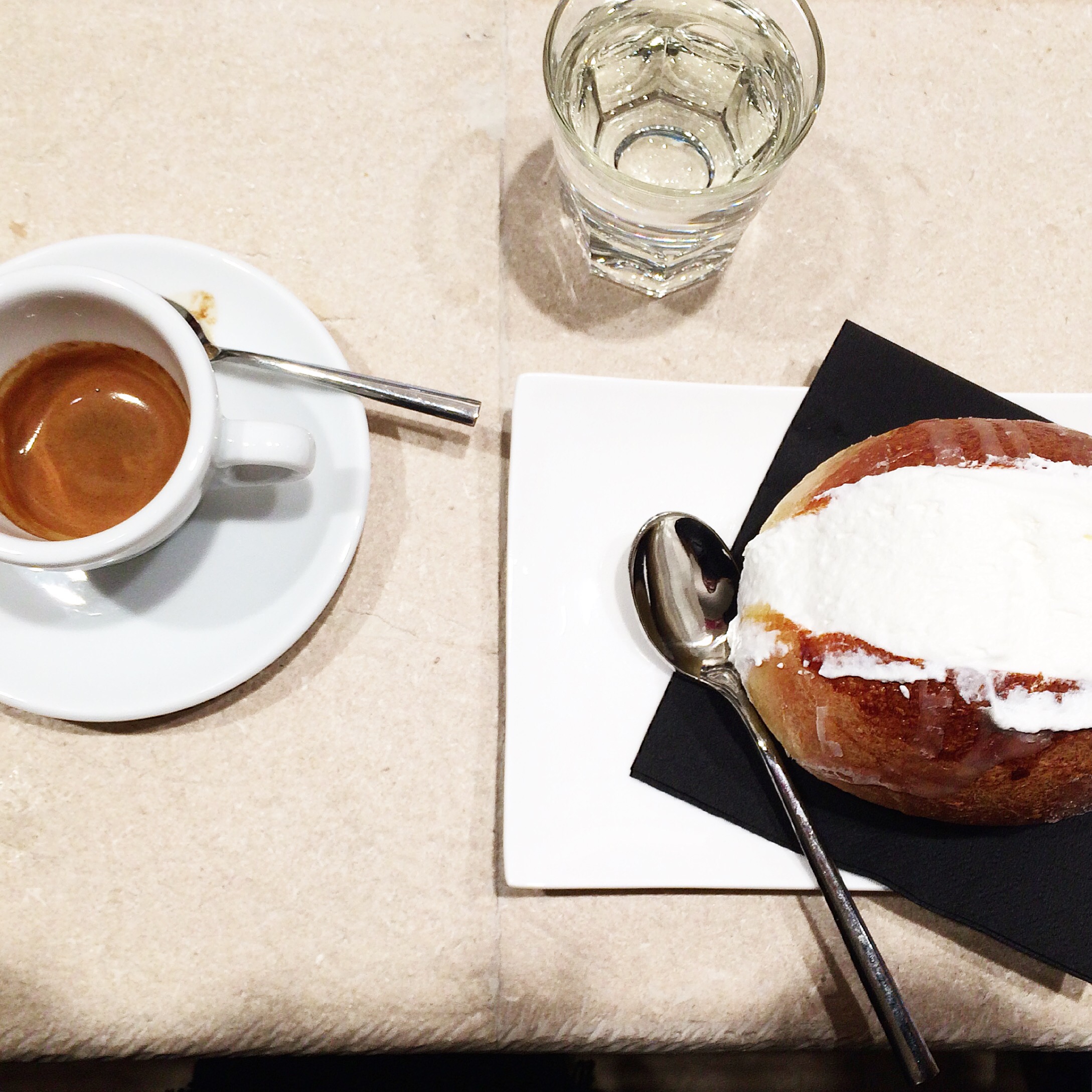 Ero pronta a pagare 5€ per un buon caffè firmato Roscioli, ma sorprendentemente il costo è quello della solita tazzina di caffè!