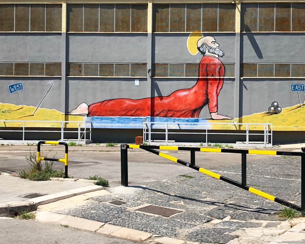 Bari è un po’ così: è fatta di calore e di contrasti, di confidenza e di indifferenza, di suono del mare e di rumori caotici, di dialetto serrato e di un modo di parlare un po’ scurrile anche in italiano. Bari è panni svolazzanti stesi al sole, orecchiette fatte a mano e stese al sole pure; vicoli stretti e maldestri, facciate bianche e pure, pietra locale inondata di luce. Bari è squadre di pulizia dei condomini su biciclette cariche di secchi, scope, detersivi, i traslochi fatti su di un Ape Piaggio decadente. Bari è una sfilza di scarafaggi dalle dimensioni esorbitanti che capeggiano le notti d’estate, è il profumo di salsedine a due passi da casa. Bari è un lungomare che sembra non conoscere fine, è il Teatro Petruzzelli che si staglia su di un cielo terso, è il Teatro Margherita che echeggia sulle increspature saline, è il Teatro Piccinni inaugurato dopo un estenuante restauro. Bari è via Sparano pervasa dal traffico umano, è palazzoni eleganti di importanza storica, è la malleabilità di Palazzo Mincuzzi, la plasticità di Palazzo Fizzarotti. Bari è la vastità di Piazza del Ferrarese, è Bari vecchia con le sue strade intricate, le edicole sacre e colorate, la Cattedrale che si avviluppa in altezza, la maestosa Basilica di San Nicola che si sviluppa in larghezza, il castello imponente. Bari è vita di quartiere, è botteghe storiche e negozietti di zona; è focaccia calda a merenda a qualsiasi ora; è il panzerotto bollente divorato a Largo Albicocca; è una Peroni ghiacciata a El Chiringuito al modico costo di 1€; è cozze con la mortadella, sgagliozze, popizze, cartellate; è la fila immensa per accomodarsi a mangiare una sfilza di antipasti, di pizza e di Peroni a Il Rustico all’incredibile prezzo di 10€. Bari è Pane e Pomodoro e no, non quello che si mangia a merenda, ma la spiaggia più famosa della città. Bari è lo stadio di San Nicola e la Bari che ci gioca sempre. Bari è un ponte, anzi due, avveniristici rispetto al resto della città. Bari è una chiesa ortodossa che con un’occhiata ti fa catapultare in Russia, o forse in Ucraina. Bari è locali alla moda con un design emergente che incalza. Bari è un sushi bar impossessatosi di uno spazio dal savoir-faire art nuoveau firmato Paolo Portoghesi. Bari è un parcheggio introvabile. Bari è un murales di street art firmato Maupal, raffigurante un San Nicola che si forgia nella tonificante posizione yoga del cane a testa in sù (urdhvamukha shvanasana), aprendo il cuore al mondo. Bari è la festività di San Nicola che si festeggia non una, ma ben due volte l’anno, perchè l’abbondanza è qui di casa. Bari è un aeroporto (forse l’unico al mondo) raggiungibile dal centro con un biglietto di solo 1 € tramite un autobus del trasporto pubblico locale. Bari è gente in piazza che le sere d’estate banchetta a cielo aperto, portandosi sedie, tavoli, borse frigo, panini, teglie, bevande da casa, per impadronirsi dei luoghi pubblici e dei luoghi comuni pure. Bari è una signora all’apparenza per bene che mi ha redarguita perché sotto la pioggia camminavo con l’ombrello troppo basso. Bari è una sartoria gentile che mi ha ricucito al volo il Woolrich strappato poco prima di prendere un volo per Riga. Bari è il gestore di un supermercato gourmet che, sol perché curiosavo tra gli scaffali, leggendo accuratamente le etichette dei prodotti (come faccio al mio solito), mi ha infamata accusandomi di aver rubato qualcosa senza prova alcuna e, dopo avermi perquisito la borsa, si è scusato con le lacrime agli occhi. Bari è quel supermercato gourmet che ha perso una cliente per diffamazione.