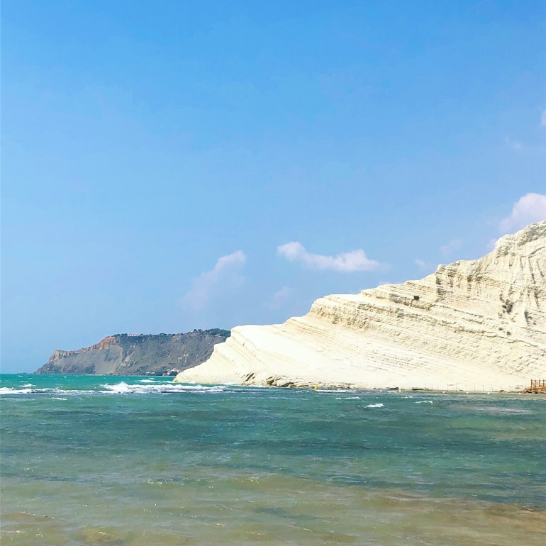 Nei dintorni di Agrigento ci sono luoghi degni di nota. A pochi chilometri dalla città si trova quel lembo di costa noto come la Scala dei Turchi: un tratto di costa bianca, rialzata e scoscesa, ondulata e gradonata, che abbraccia una distesa di mare azzurro. Questa falesia lungo il litorale di Realmonte, nei pressi di Porto Empedocle, da luglio scorso, per motivi di sicurezza e di salvaguardia naturalistica, non è più accessibile al pubblico e non si può né percorrerla né sostarci. Non tocca che accontentarsi di ammirarla da vicino, di fotografarla, di elogiarla, senza tangerla.