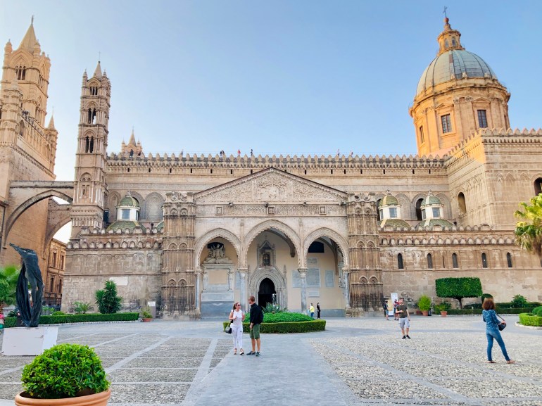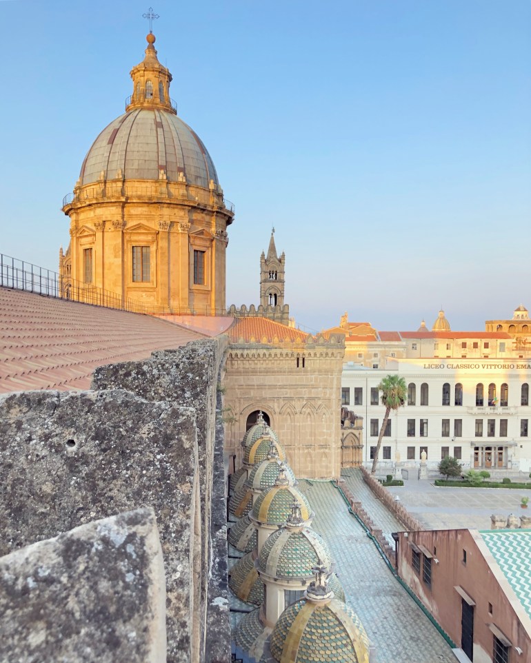Percorrendo tutta via Vittorio Emanuele da un lato si giunge alla splendida, splendente, gigante e lucente Cattedrale di Palermo, dove è possibile camminare sui suoi tetti, circumnavigare la sua cupola, apprezzare le sue decorazioni dall’alto. Lì nei pressi si trovano, accanto alla mastodontica Porta Nova, piazza del Parlamento con l’austero Palazzo Reale, il vicino ed etnico Palazzo dei Normanni, l’adiacente e sfarzosa Cappella Palatina.