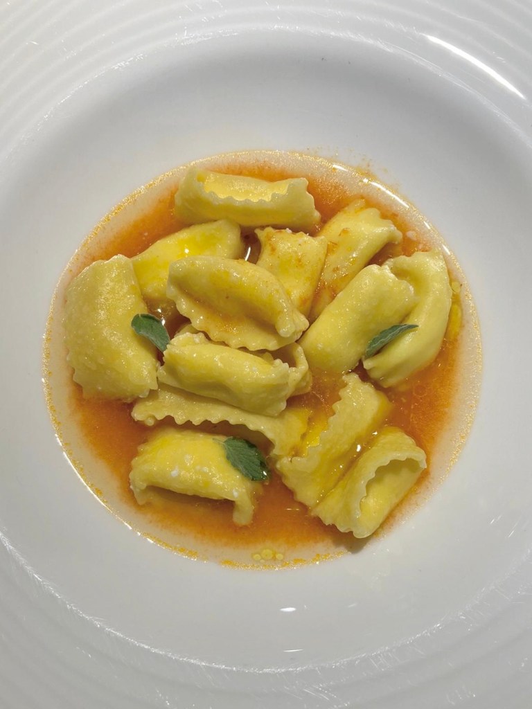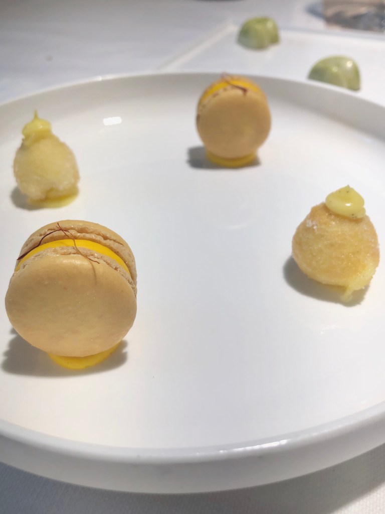 Dopo esserci stata un po’ di anni fa, ci sono volentieri ritornata qualche mese fa, e anche questa volta la mia scelta è ricaduta sul menu classico, perché il primo amore non si scorda mai. Dopo il classico entreè di benvenuto, che prevede finger food gustoso e sfizioso contornato dai loro croccantissimi grissini e dal loro fragrantissimo pane, ecco giungere la prima portata che porta in serbo una profusa manciata di mare: la Cicoria e cicale di mare, appunto. A seguire la loro celeberrima Triglia in skapece espressa così egregiamente croccante da fare invidia a qualsiasi tempura perfetta mangiata in Sol Levante; il primo piatto, protagonista indiscusso di tutto il pasto, costituito da Ravioli di ricotta in brodetto di crostacei, succulenti ed avvolgenti nel loro essere così gustosi e delicati; il secondo, ossia la Ricciola laccata di mele e cipolle, così tenero il pesce e così croccante l’erbetta che la contorna che rasentano insieme la perfezione; il tanto atteso dolce, la Creme Brulè al cardamomo, albicocca e gelato alla mandorla, fresco e deciso, che è indubbiamente il dessert perfetto per concludere con grinta un pranzo a base di pesce. Dulcis in fundo fundo, la piccola pasticceria, ovvero l’apoteosi per i golosi come me.