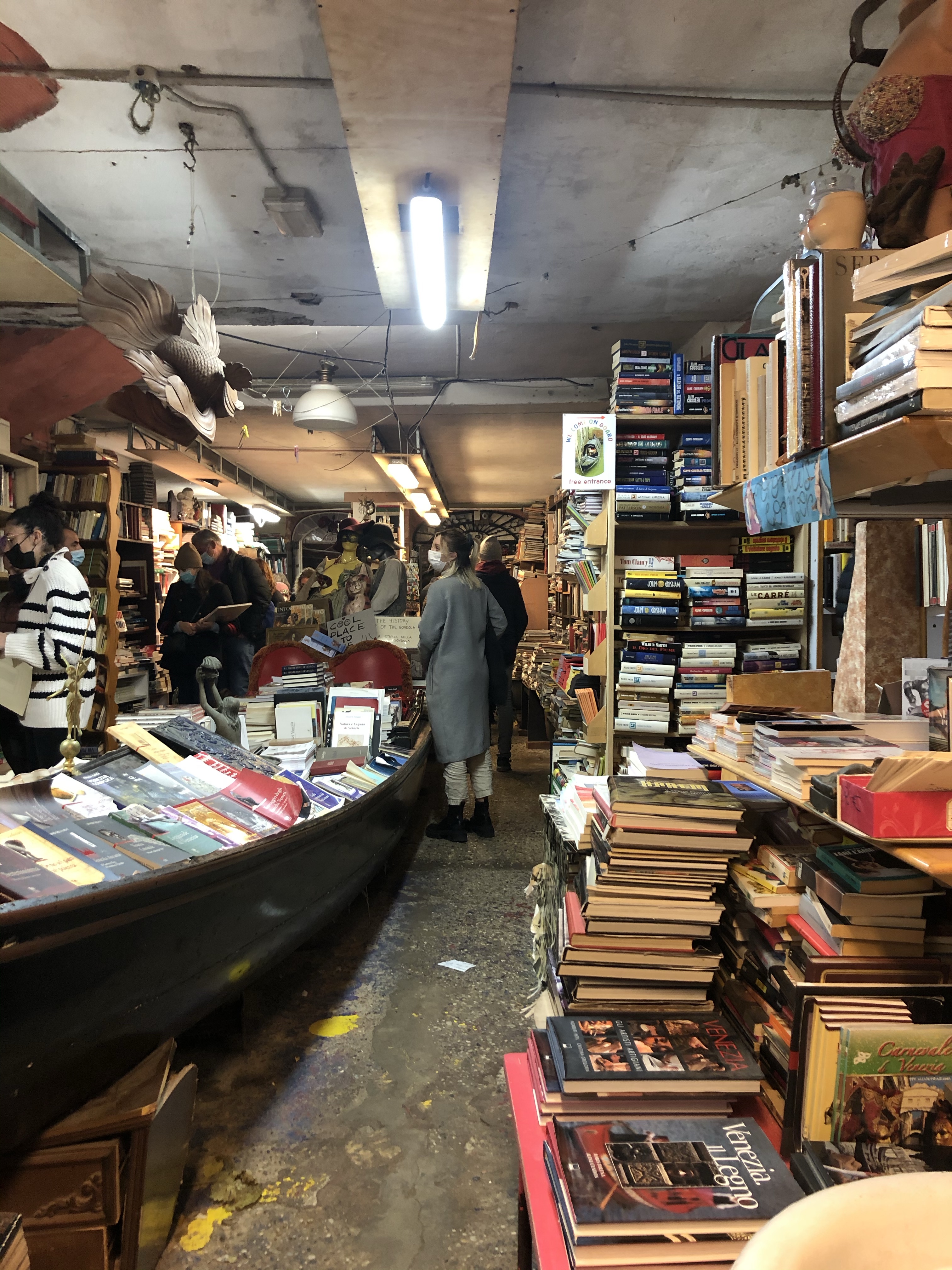 Calle dopo calle si giunge alla famosa Biblioteca dell’acqua alta, un luogo empatico ma caotico, così carico di libri e di oggetti, dove un salto è d’obbligo anche solo per capire o per sfatare tutta questa sua fama.