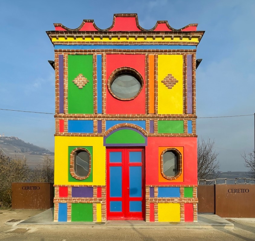 Un altro borgo molto grazioso, con un punto panoramico davvero notevole, è La Morra. Tra la sua campagna si adagia la cosa forse attualmente più nota, e tra l’altro la più instagrammabile, delle Langhe: la cappella del Brunate, anche nota come cappella di Barolo, ossia una vecchia chiesetta mai consacrata ringiovanita grazie alla mano colorata degli artisti Sol Lewitt e David Tremlett [ su iniziativa della cantina Ceretto ], che hanno ridipinto con colori vivaci e geometrici ogni sua superficie esterna per risollevarne le sorti e l’aspetto. Insomma, un vero e proprio tripudio di colori vivaci che rallegra l’anima e che propaga energia. Nei suoi dintorni si trovano disseminate anche alcune delle celebri panchine giganti e colorate, facenti parte del più ampio progetto noto come Big Bench Community Project, ideato dal designer statunitense Chris Bangle per rendere fruibili determinati panorami e implementare il turismo nelle zone che le ospitano.