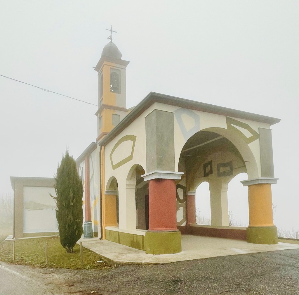 Altra celebre opera delle langhe, instagrammata quasi quanto la cappella del Brunate, è la Chiesetta della beata Maria vergine del Carmine di Coazzolo, rivitalizzata dal creativo artista britannico David Tremlett, su iniziativa privata, tramite dipinti murali sulle sue superfici sia esterne che interne che dialogano con il contesto naturalistico in cui si trova in un’empatia cromatica camaleontica ma magnetica. Qui nei pressi si trova anche il parco diffuso de La vigna dei colori, opera di Piercarlo Anfosso, dove matite colorate giganti fanno incursione tra tra i filari di vigne, si collocano al posto dei pali di testa dei vigneti ed enfatizzano con allegria i colori del paesaggio circostante.