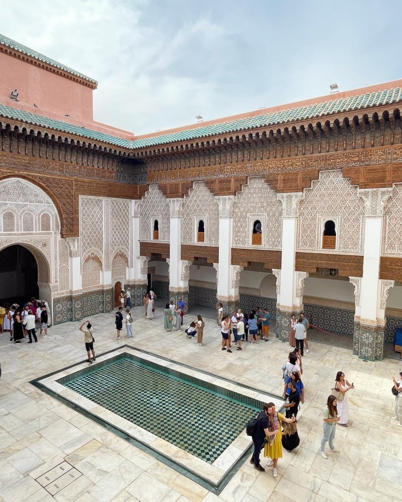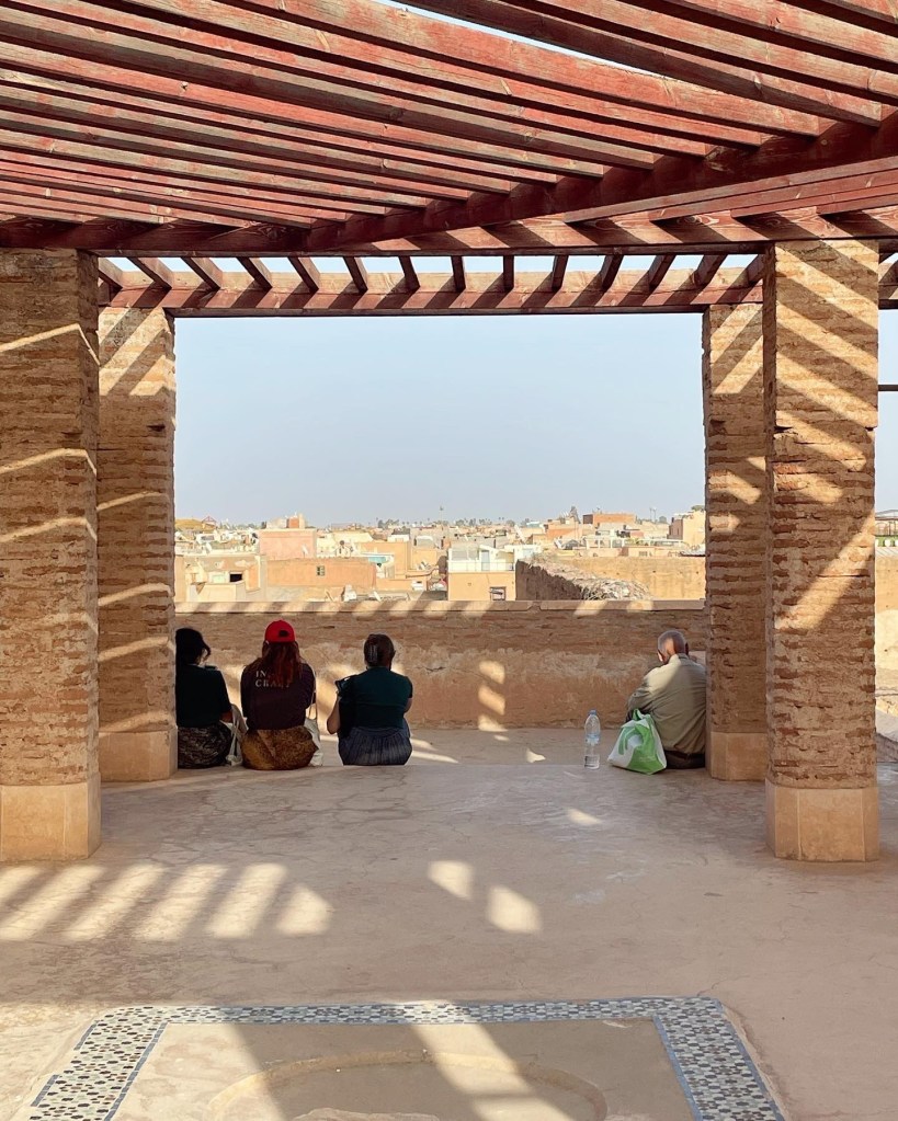 Altra terrazza emblematica è quella della Terrace des Epices, nel cuore pulsante del centro città, dove si trovano anche le attrazioni più eclatanti della città come lo scrigno del Jardin Secret, un giardino botanico discreto e silenzioso che implode nel caos del centro, con una piccola terrazza panoramica, e la Madrasa Ben Youssef, un palazzo colorato, maiolicato è incantevole, con meraviglioso giardino interno, che ospitava l’antica scuola islamica della città.