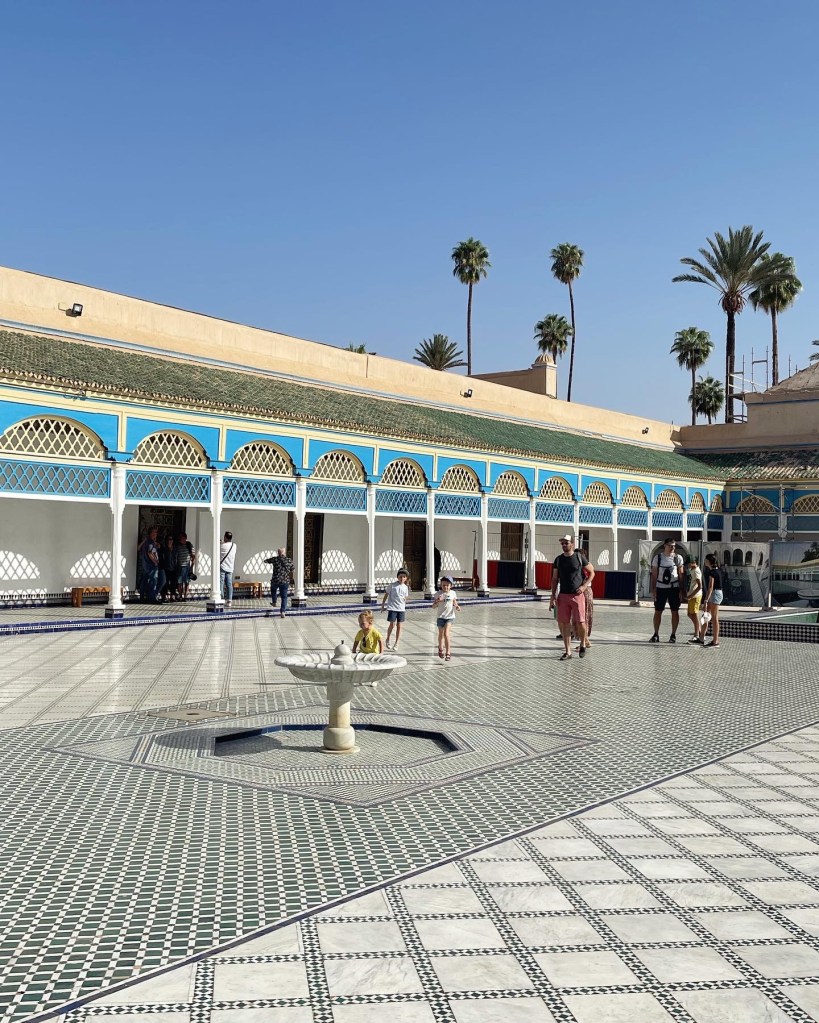 Non distante, passando per vicoli e per bazar e per la movimentata Piazza des Ferblantiers, si trova lo splendido Palazzo El Bahia, una dimora che sembra d’altri tempi ma che in realtà è quasi attuale, con i suoi colori, le sue ceramiche e i suoi decori variegati che rallegrano lo sguardo negli 8 ettari e nelle 150 stanze che lo compongono. Da qui ci si immerge in poche falcate nel quartiere ebraico Mellah, con l’azzurra sinagoga Slat Al Azama e le case un po’ degradate e un po’ fatiscenti.