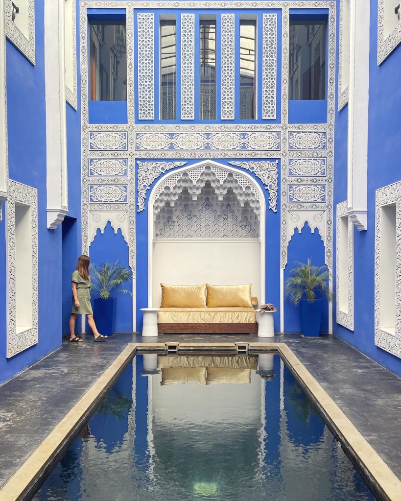 Un po’ fuori dal centro, si trovano il tanto instagrammato Jardin Majorelle, dove il blu berbero e il verde burbero sono i protagonisti di un meraviglioso giardino esotico fatto di edifici e piante prorompenti e, a pochi passi, il celeberrimo Museo Yves Saint Laurent progettato dal parigino Studio KO, dove la raffinatezza espressiva è la colonna portante della splendida storia di successo del famoso stilista iraniano-francese. Gueliz, il quartiere che li ospita, spicca per quell’eleganza moderna e tradizionale dei suoi edifici.